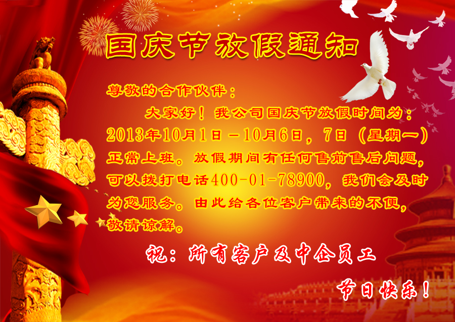 2013年國慶節(jié)放假通知 更新時間:2014-08-20點擊次數(shù):5894次